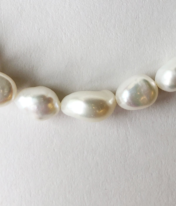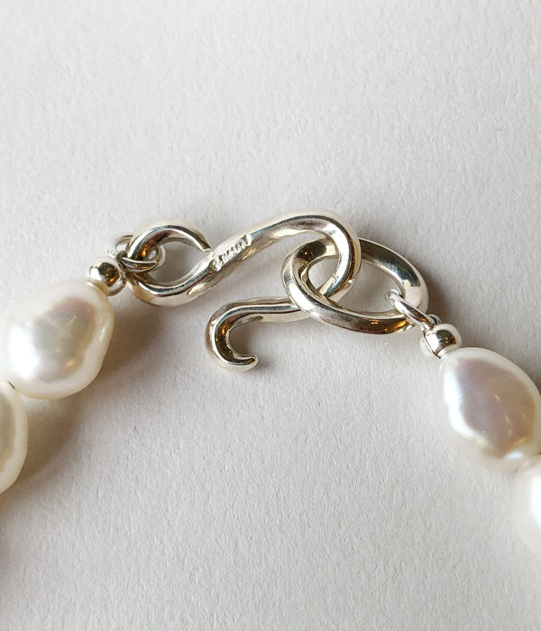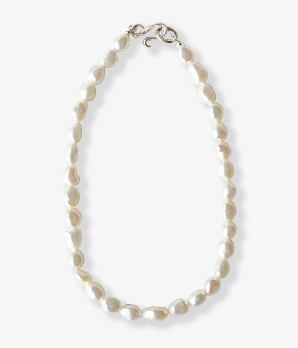 R.ALAGANからCLASSIC PEARL NECKLACEが入荷しました。上質な淡水バロックパールのみを使用したネックレス。オリジナルデザインの留め具を見せるように着けても◎。短すぎず長すぎず、一番クラシックな長さです。他のネックレスとの重ね付けもおすすめ。