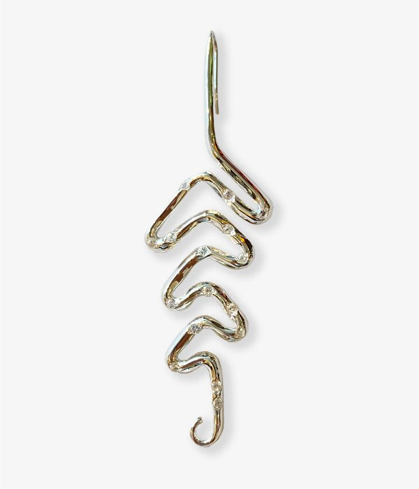 R.ALAGANからFICKLE LEAF EARRING(SILVER)が入荷しました。成長・希望・再生と復活を表し、願いを成就させてくれる、若さや生命力の象徴である葉をラインで描いた片耳用ピアス。所々にあしらわれたホワイトサファイアの無垢なきらめきを耳元に。