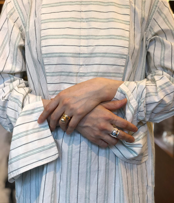 R.ALAGANからNAPKIN RINGが入荷しました。レストランのナプキンリングから着想。緩やかなシェイプとリム(縁)のあるデザインはシンプルながら存在感があり経年変化でいい雰囲気を醸し出してくれそうです。幅広デザインの為、人差し指や中指に着用される場合は2サイズアップがお勧めです。