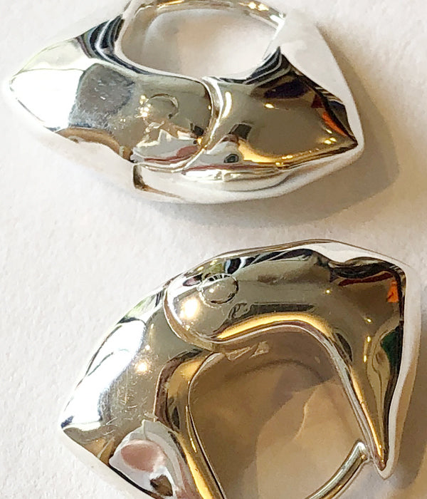 R.ALAGANからTINY BAUM HOOPSが入荷しました。BAUMKUHEN EARRINGSの小さいバージョン。横から見るとひし形のフォルムで、大きすぎず小さすぎずの絶妙なサイズ感。水面のような表面が多面的に光を捉え、存在感を放ちます。