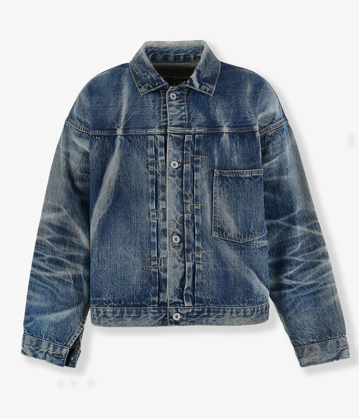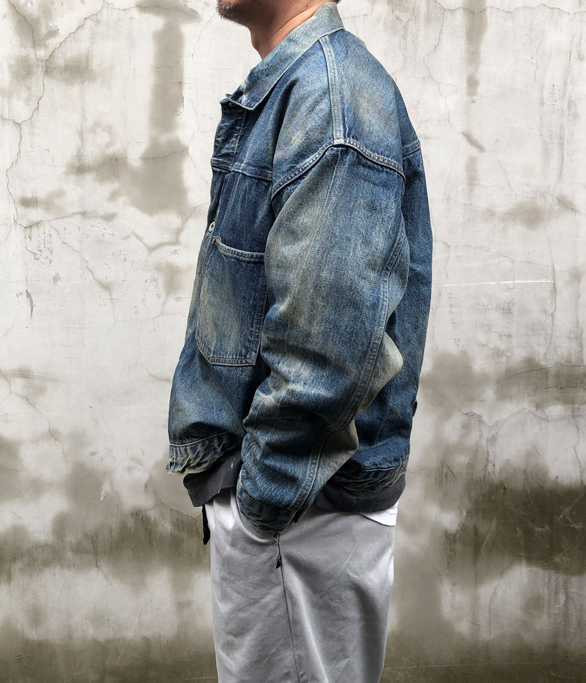 SAINT MICHAELから、BJ_DENIM JACKET/DAMAGE/BLUEが入荷しました。©SAINT MxxxxxxとBerBerJinとのコラボレーションアイテムが発売。約3年の歳月を経て完成した’50年代の霜降りグレーを踏襲したTシャツと、BerBerJinディレクター藤原裕氏がこれまで見てきたデニムジャケットの中でもトップクラスの色落ちを誇るモデルをサンプリングし、オールハンドによる加工が施されたデニムジャケットが登場。