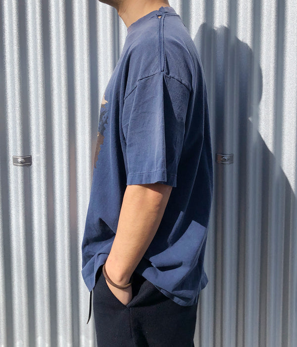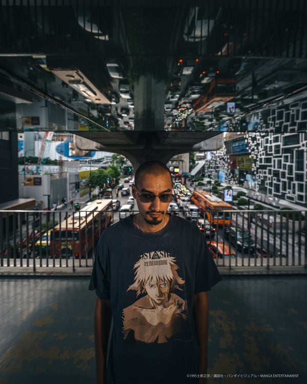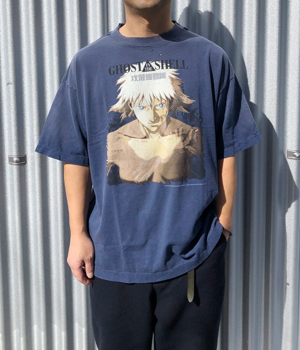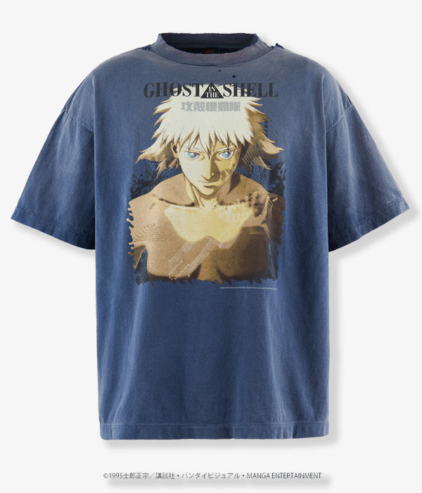SAINT MICHAELから、GS_SS TEE/GST IN THE S/NAVYが入荷しました。©SAINT Mxxxxxxより『GHOST IN THE SHELL/攻殻機動隊』とのコラボレーションアイテム。映画のキービジュアルに使用された印象的なグラフィックを採用したアイテムを展開。本コレクションに登場するグラフィックは、©SAINT Mxxxxxxデザイナーの細川がヴィンテージ加工に合うデザインをピックアップ。さらに色落ちや日焼け加工に加えて、首元に至るまで1点1点手作業でダメージ加工を施しました。