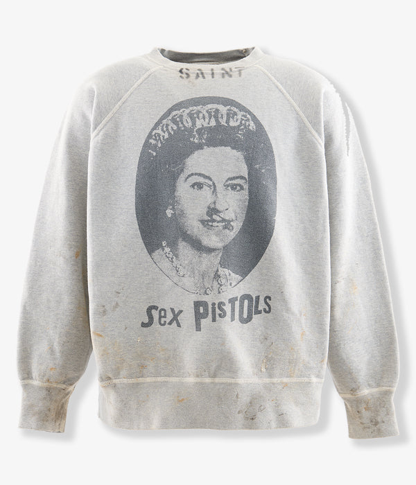 SAINT MICHAELから、SP_CREW SWT/QUEEN/GRAYが入荷しました。©SAINT MxxxxxxとSex Pistolsとのコラボレーションコレクション。ダメージ加工を施したボディに同バンドの楽曲 “God Save the Queen” のジャケットグラフィックを使用したスウェット。ヴィジュアルにはアーティストや俳優として活躍するJESSE氏を起用し、フォトグラファーRK氏によって撮り下ろされました。
