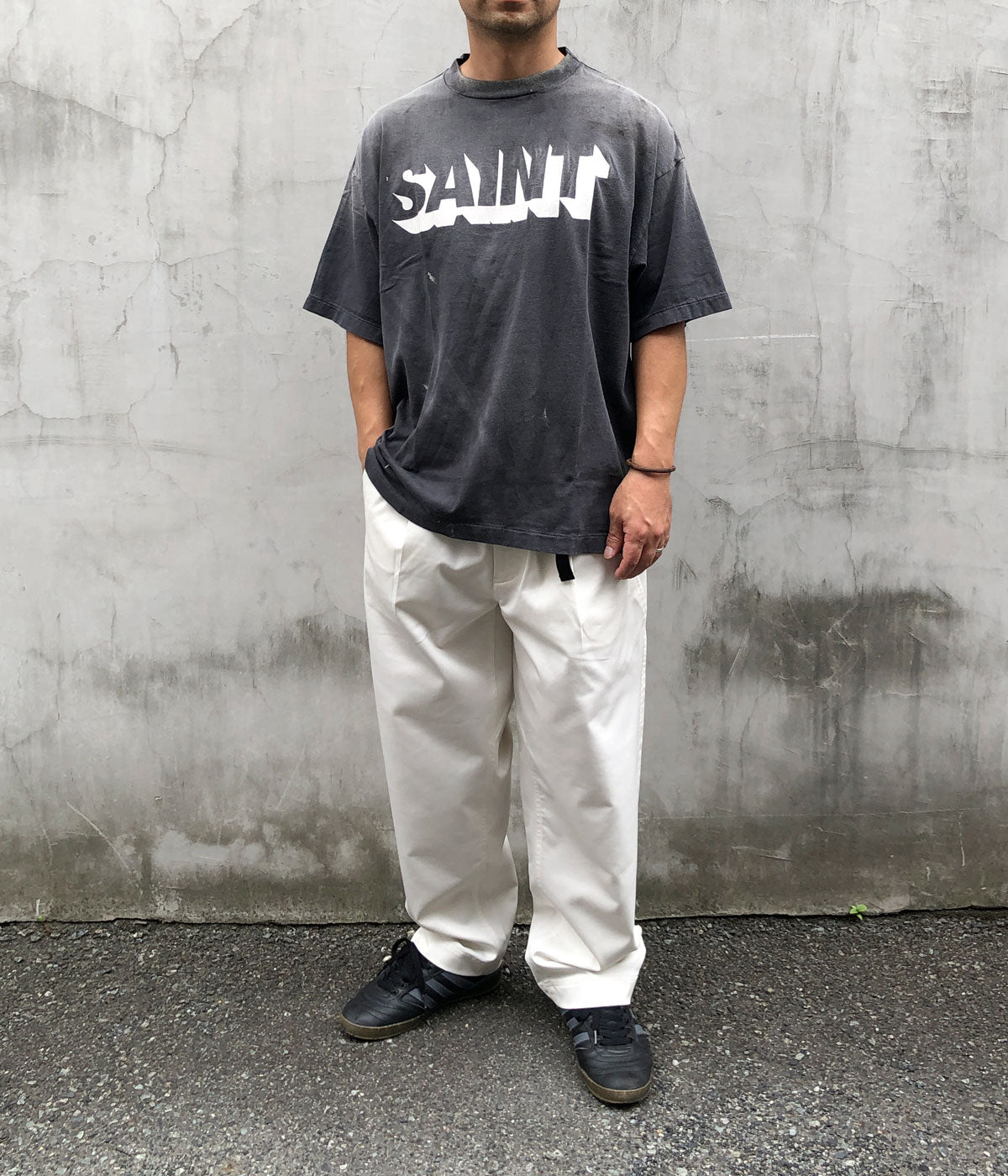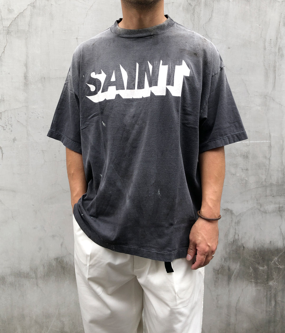 SAINT MICHAELから、SS TEE/SAINT/BLACKが入荷しました。フロントに大きく配置SAINTのロゴプリントによる半袖Tシャツ。褪色したブラックボディによるヴィンテージ感と、フェード感のあるプリントの質感がポイント。