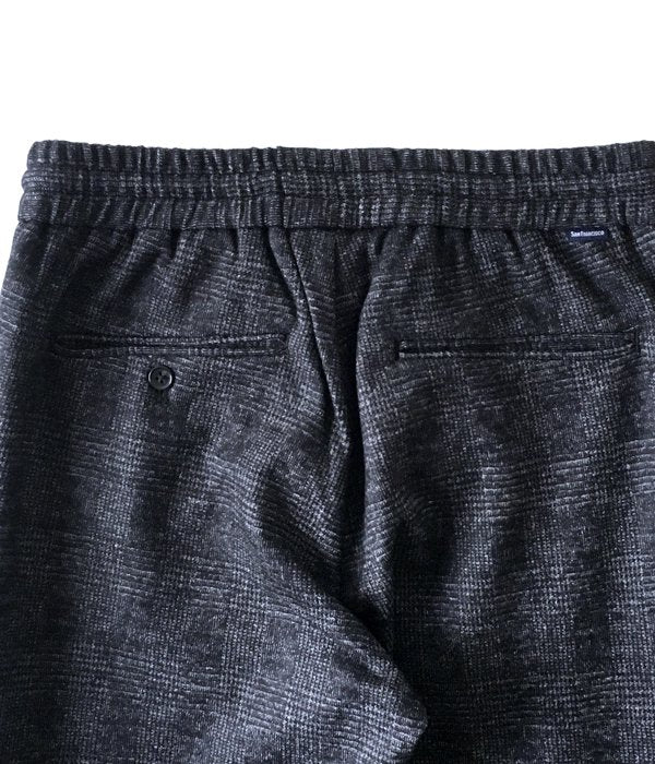 San Franciscoから、COMPRESSION JERSEY PANTSが入荷しました。圧縮加工を施し、保温性を高めたCOTTON x WOOL混紡素材を使用したチェックパンツ。細身ながらも伸縮性の非常に高い素材を使用し、着用感はまさにJERASEY感覚。ウェストはドローストリング仕様で快適に。膝の2か所のダーツが立体的なシルエットを生み出します。