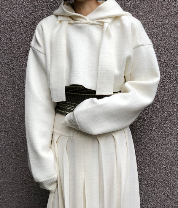 TANから)BOILED SHORT HOODIE(WHITE)が入荷しました。スーパーショート丈のニットフーディ。布帛のように伸びの少ないボイルニットを使用し滑らかさがありながらも、しっかりとした生地感で形を綺麗にキープします。ハイウエストのボトムスを合わせたり、柄物のシャツをレイヤードしたりと着こなしは無限大。TANらしさ溢れる楽しい一着となっています。