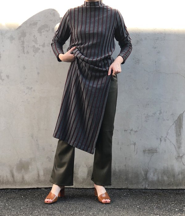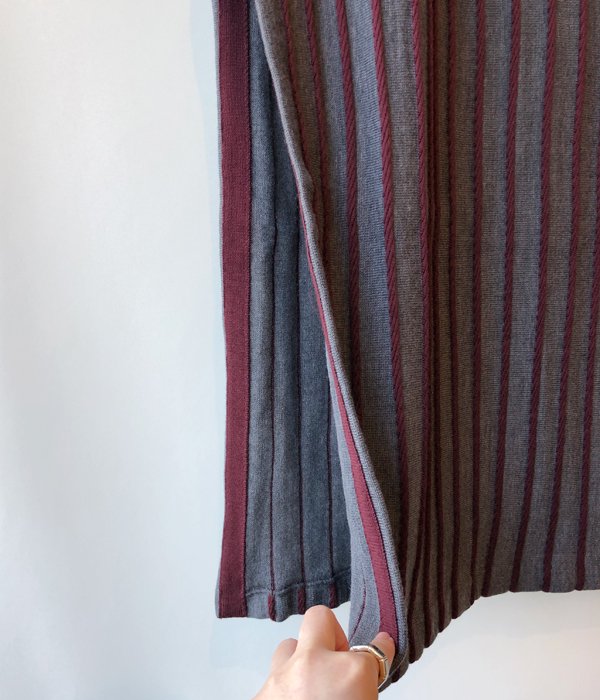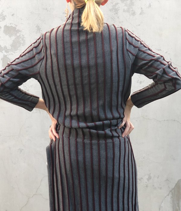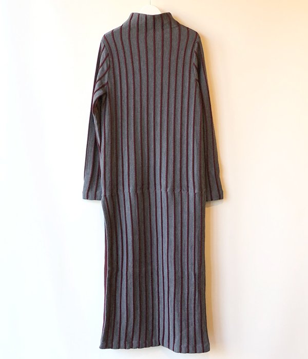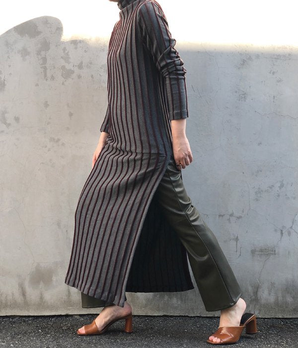 TANからCABLE STRIPE ONEPIECEが入荷しました。ロープをイメージしボーダーを編み、立体的なストライプ柄にしたワンピース。超極細の防縮ウール糸の生地は滑らかな肌ざわりで軽い着心地。ウエストより低い位置で切り替えられた脇から大胆に入ったスリットでスッキリとしたシルエットに。