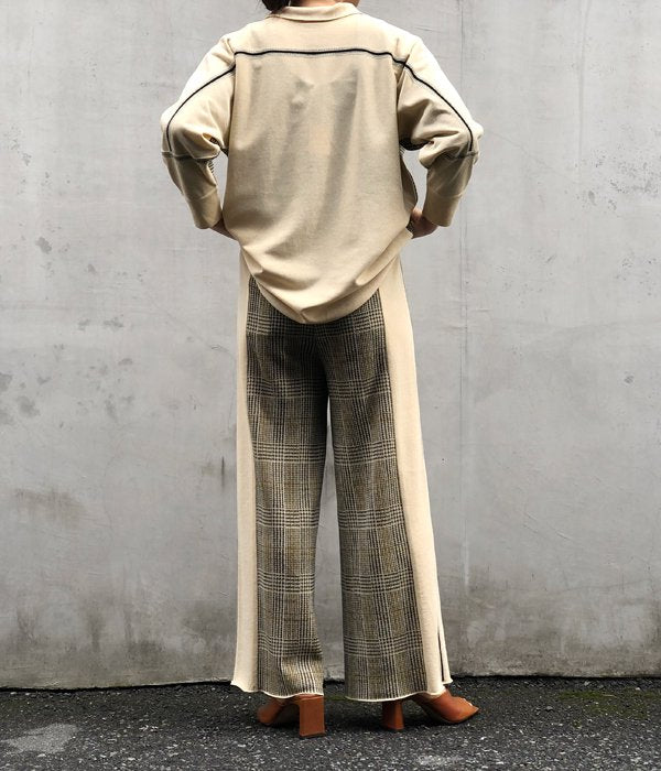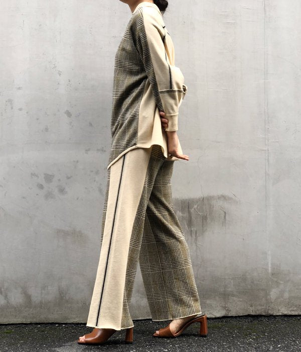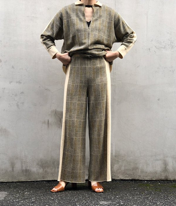 TAN/CHECKED & LINE PANTS(CREAM)