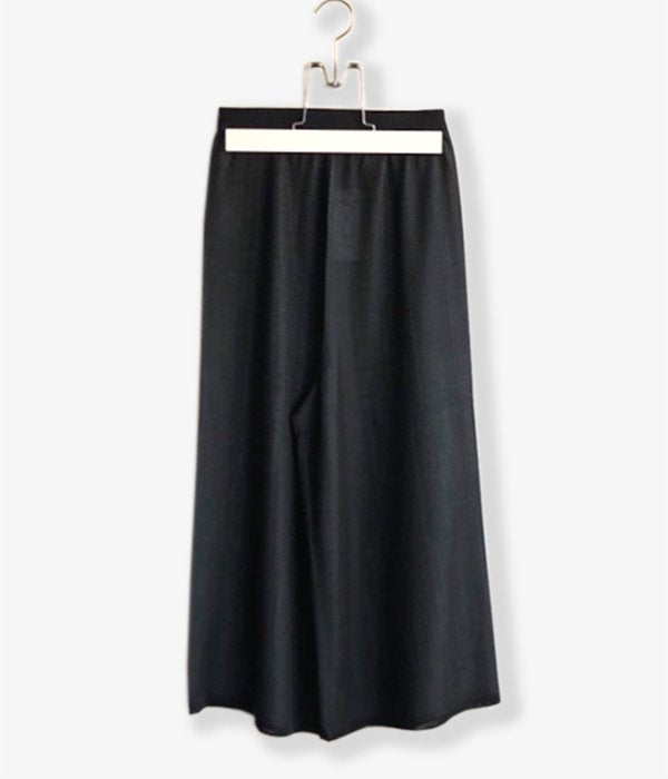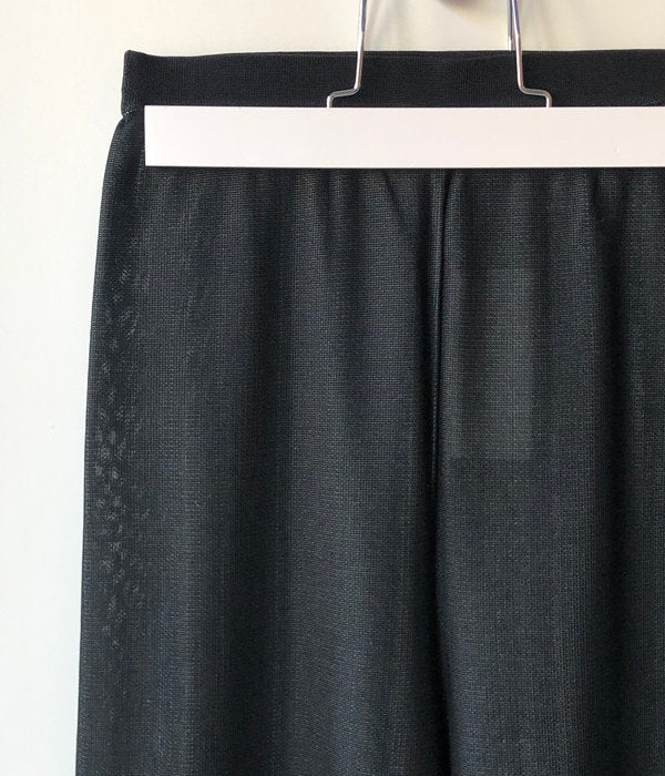 TANからDOUBLE COLOR PANTSが入荷しました。2色のジャガードで編み、重ねた色が透けて見えるような構造の生地を使用。品のある光沢感を持つサラっとした冷感素材で心地良い肌ざわり。裏地は全てサックスブルーで暑い日も快適に着用できます。