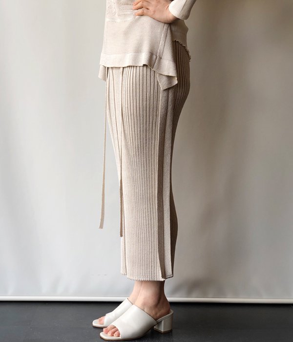 TANからGROSSY SKIRT(BEIGE)が入荷しました。光沢のあるソフトな糸で繊細に編み上げられたニットスカート。太めのリブ編み、サイドのデザインが特徴的で、タイトなシルエットもポイントです。しっかり厚みがあるので透ける心配は無用。同素材のトップスとセットアップでの着用がおすすめです。
