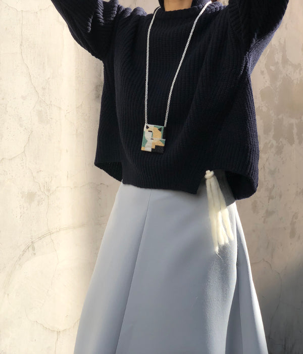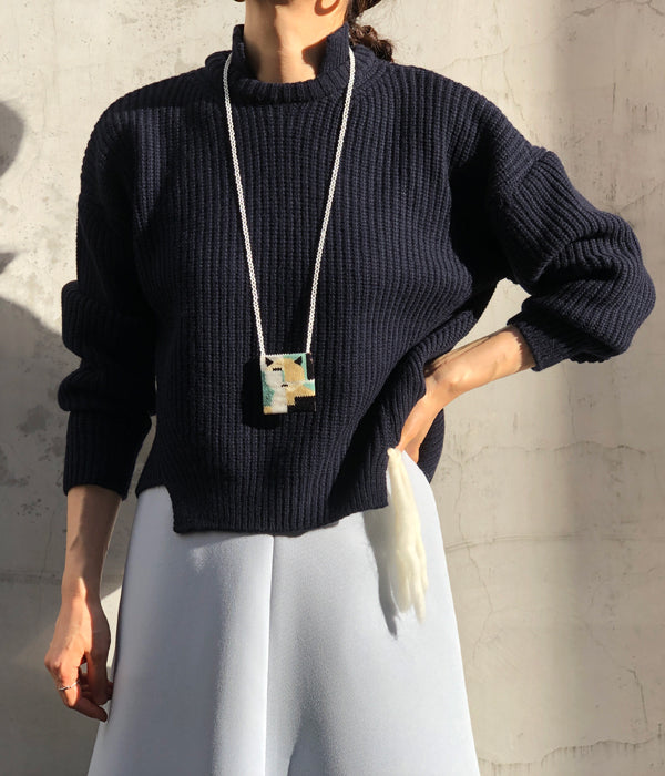 TANからKARESANSUI WOOLEN PULLOVERが入荷しました。日本の代表的な庭園の形式「枯山水」からインスピレーション。畦編みでその美しい流れを、左裾に施されたフリンジは熊手をイメージし表現されています。厚みと温かみがあり寒い時期に重宝する一枚。