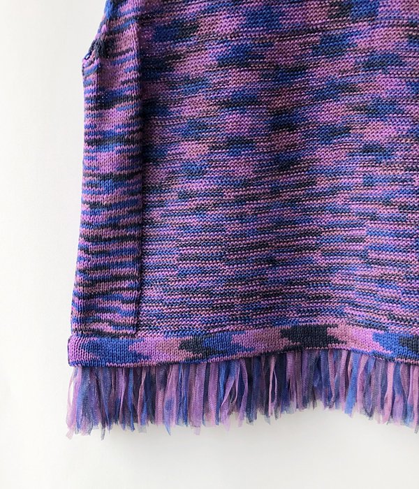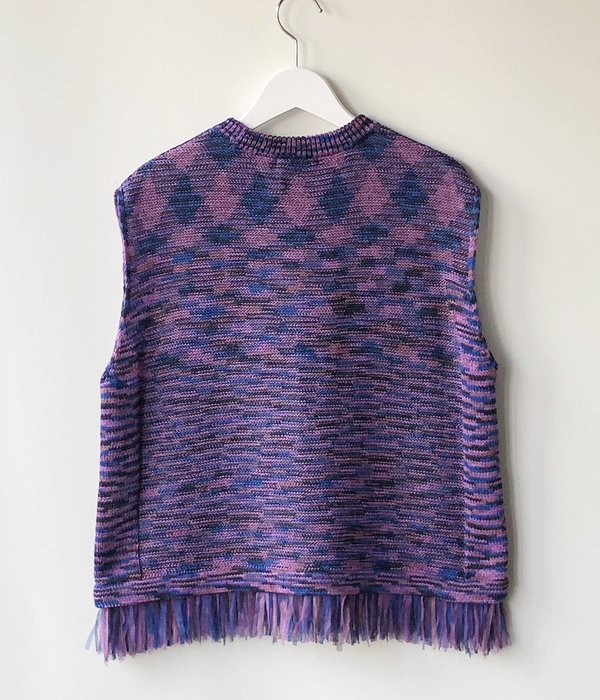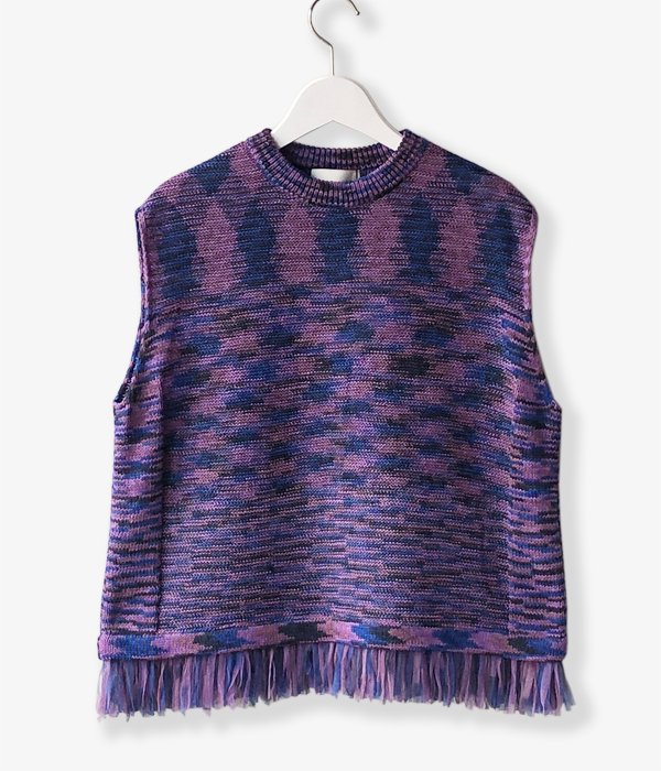 TANからKASURI TAPE TANKが入荷しました。パワーネットタイプのテープヤーンで編まれたタンクトップ。裾のフリンジ、多色の糸を使いモザイクのような絵画のような雰囲気のある柄がポイントです。柔らかくさらっとした風合いとゆったりした身幅でリラックス感のある着心地。Tシャツ等と重ねてベストの様に着ることも。