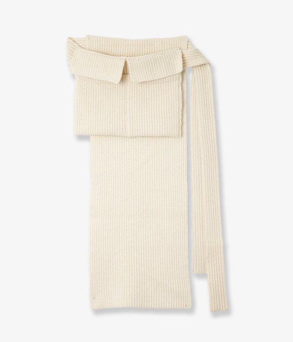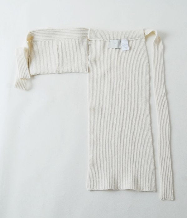 とても柔らかなラムウールを使用のウエストバッグと、エプロンニットがドッキングされたアイテム。エプロンニットは移動と取り外しも可能。他のベルトに通したりなどスタイリングの幅を広げてくれます。意外と収納力のあるウエストバッグもポイント。