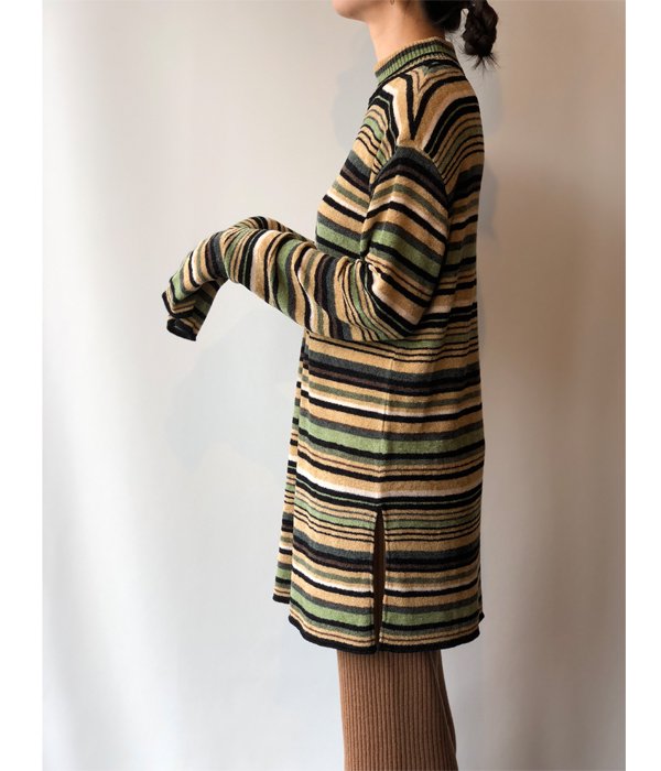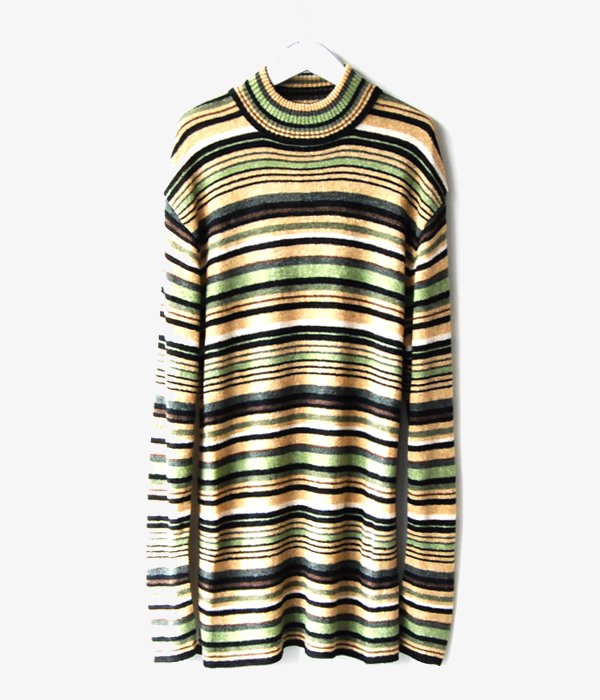 肌触りの良い糸で編まれたタートルニットプルオーバー。ふわっと軽く柔らかい生地感で着心地抜群。綺麗な配色のマルチボーダーは着こなしのアクセントに。