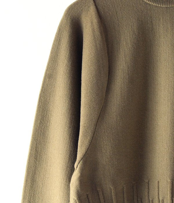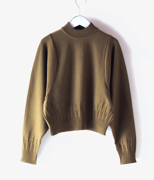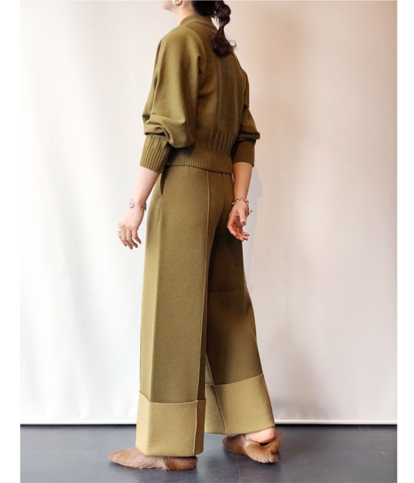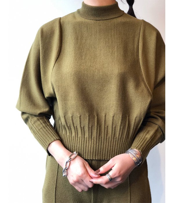 袖と裾に施された編み柄が印象的なニットプルオーバー。たっぷりとした袖は着用時に女性らしいシルエットを演出。