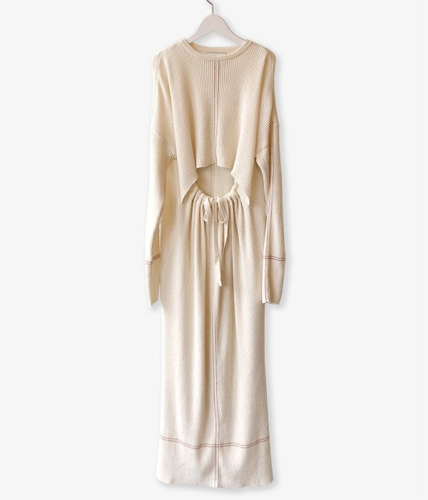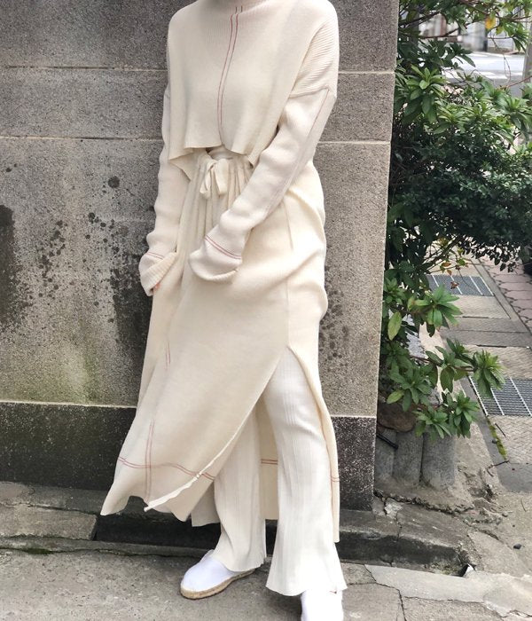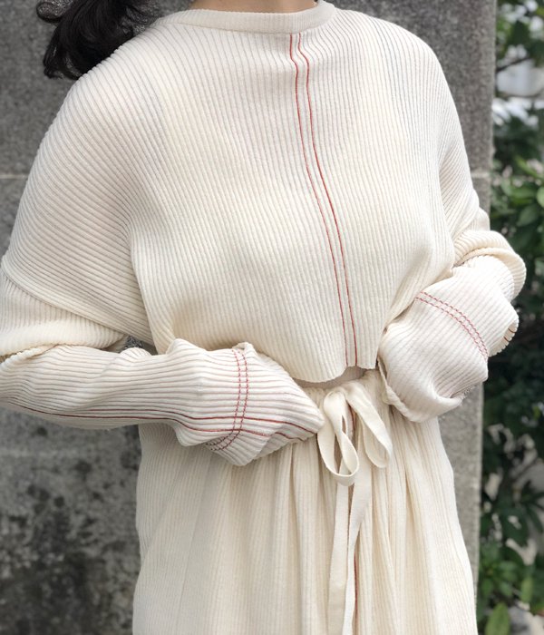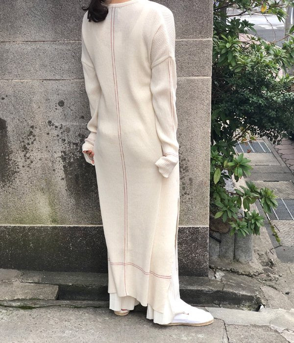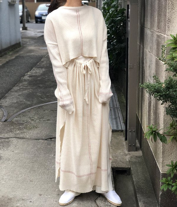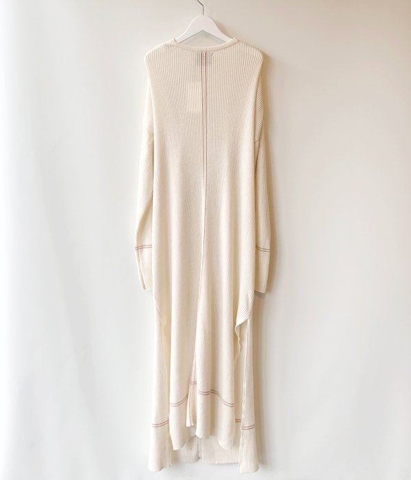 TANからSTICH RIB OP(OFFWHITE)が入荷しました。薄手のコットンニットを使用した肌ざわりの良いリブニットドレス。ウエストのスリット、縦横に走る手の込んだカラーチェーンステッチがデザインのポイント。スリットから色や柄を覗かせて、TANらしいレイヤードスタイルを楽しめる一枚です。