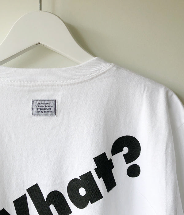 TANGTANGからTILT WHAT?が入荷しました。オリジナルボディーを使用。フロント、バックともにプリントを施し、シンプルなメッセージに奥行きを感じるTEE群です。ネックバックにネームを装備。I'd Rather Be Killed By Excitement Than By Boredom。