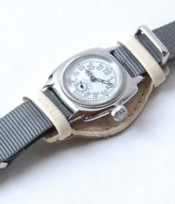 イタリアの老舗タンナー「Guidi&Rosellini社」の馬革を使用して日本で製作した時計の台座です。Guidiレザーを使用したアイテムは国内ではVAGUE WATCH Co.のみの展開で、今までの時計に無い雰囲気が味わえます。一緒に紹介しているナイロンベルト、「Guidi&Rosellini社」のレザーを使用した台座、ムーブメントを自分好みのカラー、パーツで制作できるのも魅力の一つ。