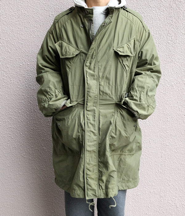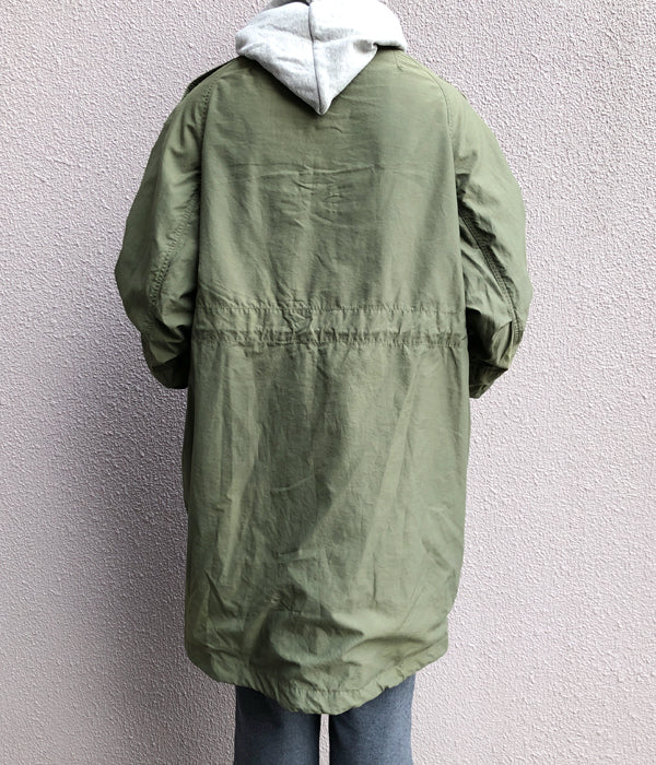 visvimから、BEGA COMBAT COATが入荷しました。。高密度に織り上げたミリタリーツイル生地を使用したスタンドカラーコート。ボリュームがある肩傾斜が強いラグランスリーブに仕立てたゆったりとしたシルエット。ウェストと裾にドローコードを仕込み、袖口にはテープベルトの調節機能付き。フロントはファスナー(riri M8)と、スナップボタン留め。大きめのフラップ付きポケット4か所がアクセントに。