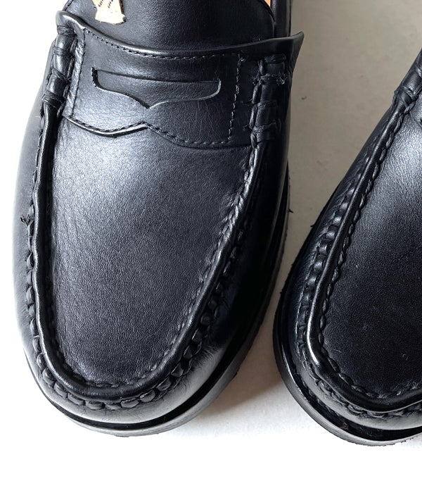 visvimから、FABRO-FOLKが入荷しました。フランス製カーフレザーと、Vibramアウトソールを合わせたシンプルなレザーローファーシューズ。特殊な加工によるシワがレザーに表情を与えます。ロゴマークをパッチで飾り付けたシンプルな装飾ながらも、イタリア製レザーウェルト等、ディテールに神を宿したオーラを放つ逸品。