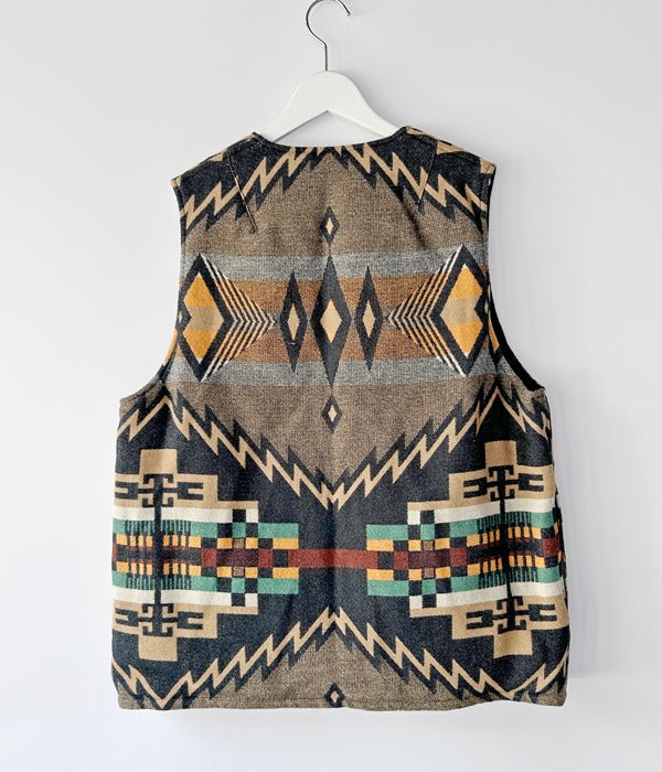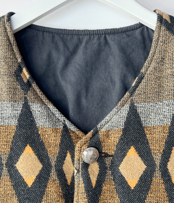 visvimから、KORA DOWN VESTが入荷しました。毛、麻、綿によるミックス素材を使用したオリジナル柄ブランケット製のダウンベスト。表情の異なるリバーシブルに着用できる便利な作り。ヴィンテージのコンチョボタンと、オリジナル水牛ボタンによるこだわりのディテールも見逃せません。
