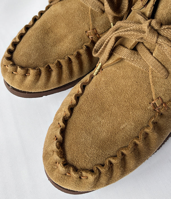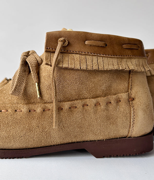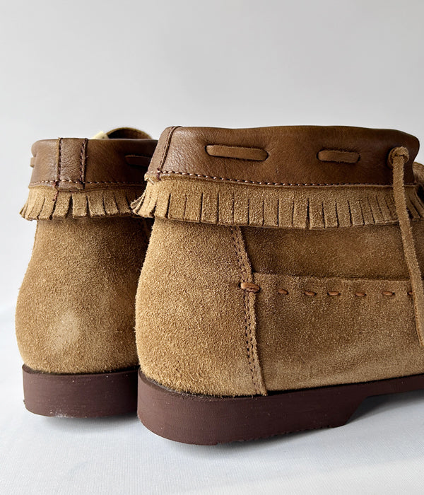 visvimから、NAKODA BOOTS MID-FOLKが入荷しました。イギリス製ベジタブルタンニングカウレザーを使用したモカシンシューズ。かかと周りのライニングをフリンジ調にアレンジし、波打つようなアッパーの縫合による特徴的なデザインで仕上げました。コルクインソールと、Vibramアウトソールで快適な履き心地を実現。