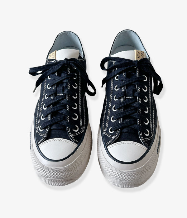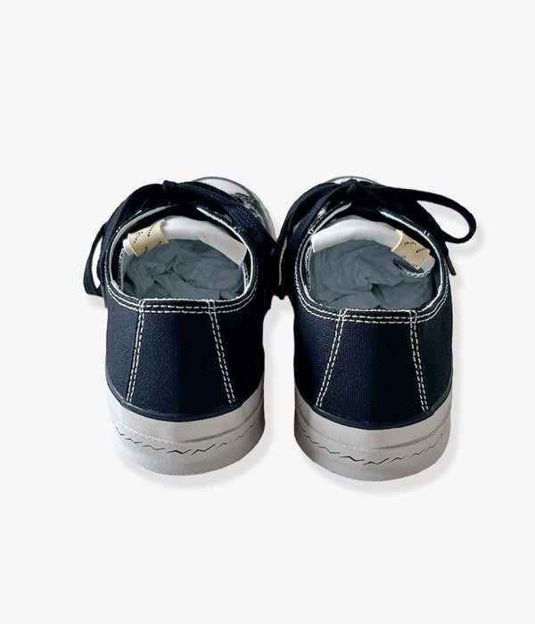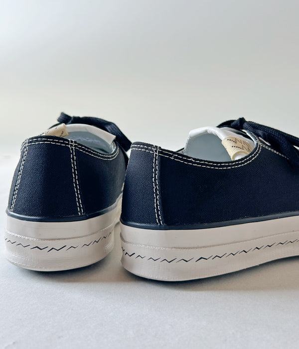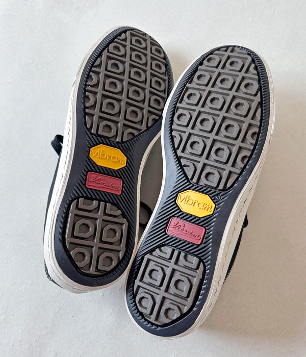 【素材】アッパー:タテ糸とヨコ糸に日本製綿100%の強撚糸を使用し、シャープなコシを持たせたキャンバス地、アウトソール:Vibramアウトソール、インソール:レザーライニング コルクインソール