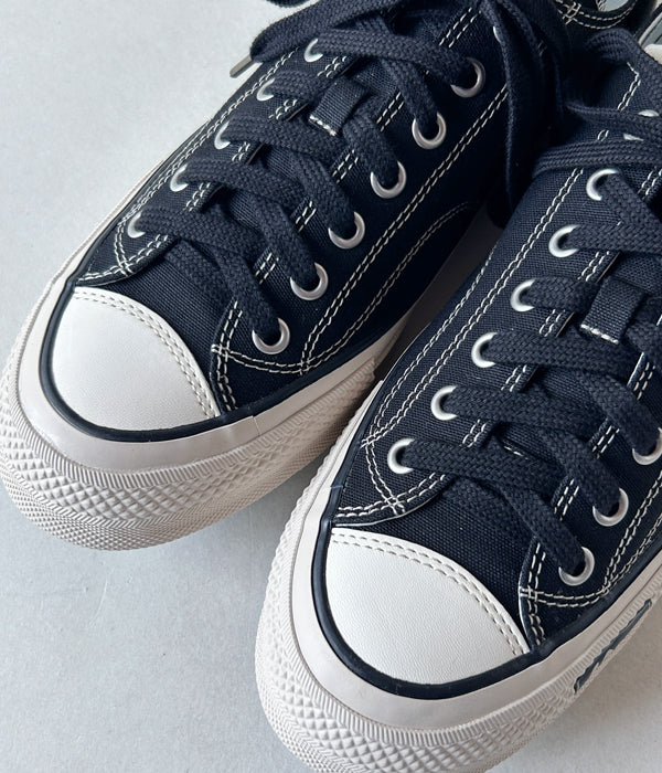 visvimから、SKAGWAY LO CANVASが入荷しました。アッパーには日本製綿100%のタテ・ヨコ共に強撚糸を使用しシャープなコシを持たせたキャンバス地を使用、アウトソールにはVibramアウトソールを使用したチャックテイラー型のローカットスニーカー。