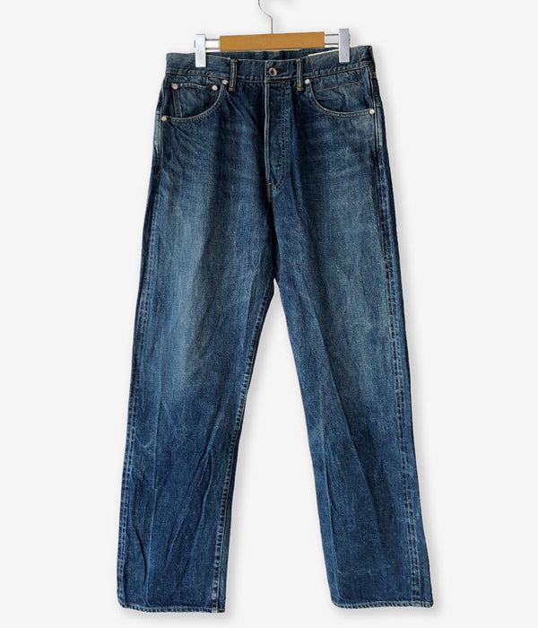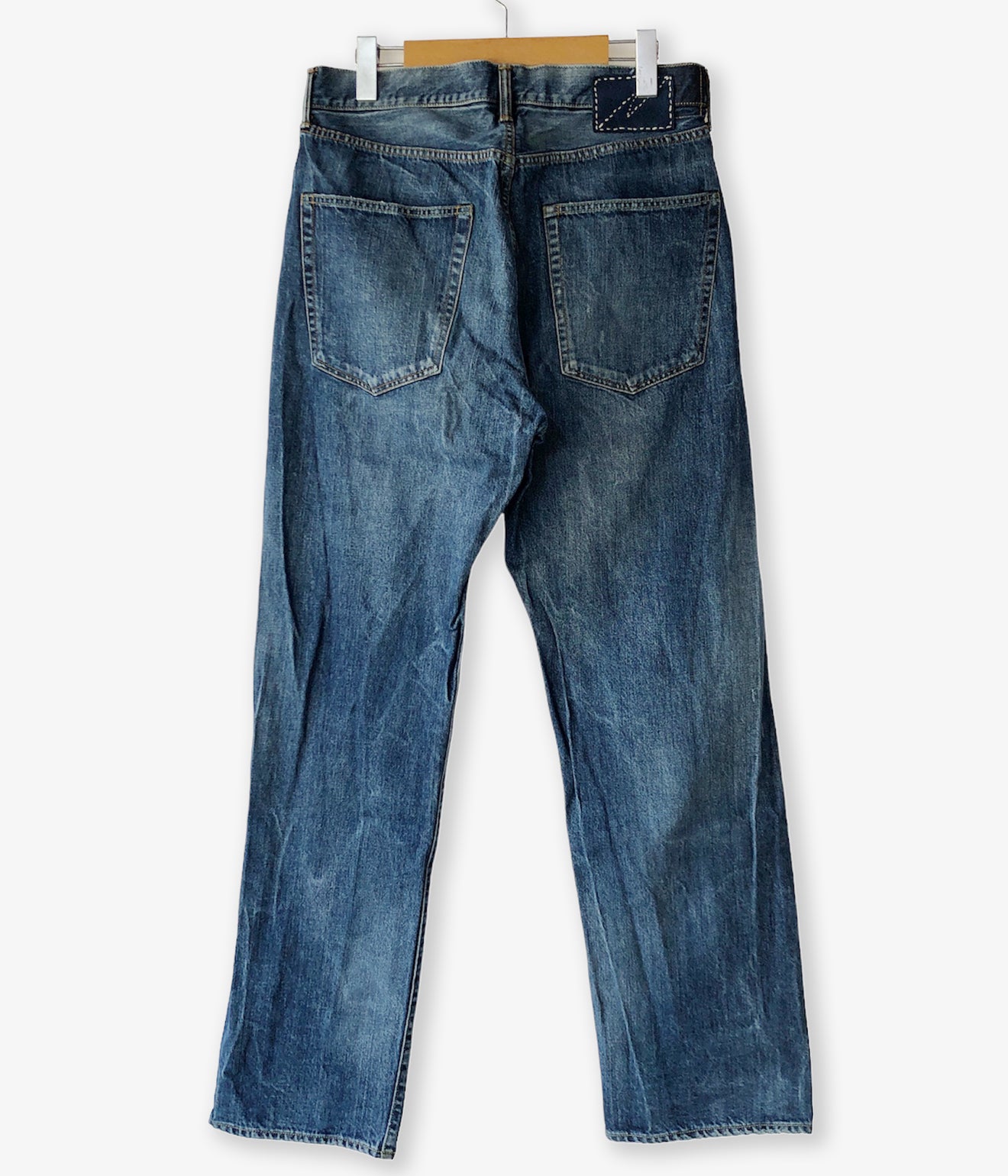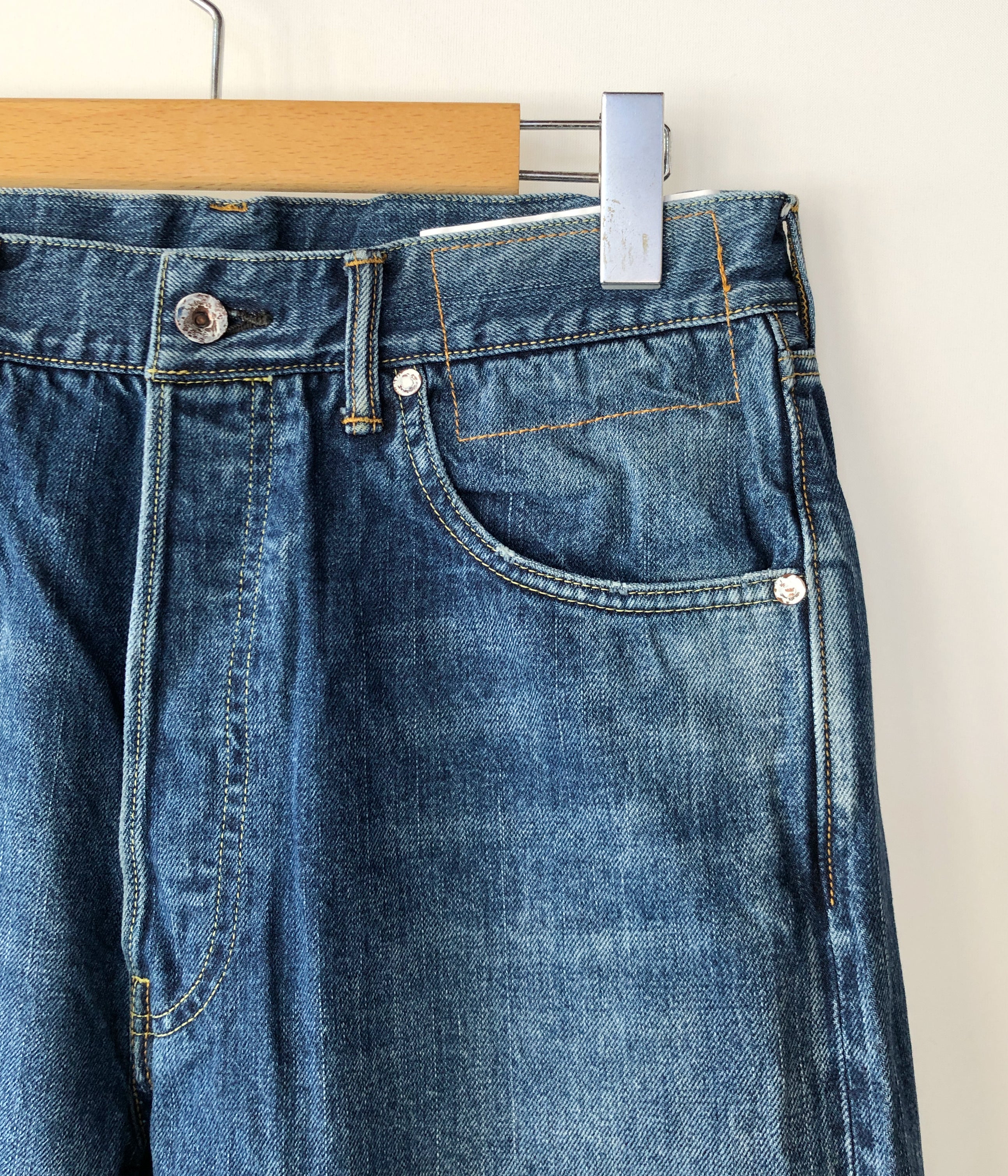 visvimから、SOCIAL SCULPTURE 01 DRY-21が入荷しました。13ozオリジナルDRY DENIMを使用。股上が深く、ストレートシルエット。ボタンフライ、ブルーセルビッジ、オリジナルハンドメイド銅製ドーナツ釦、ハンドリベット。刺し子入り天然染色加工を施したディアスキンパッチ付き。ダメージ、ドライ塩縮加工を施しました。