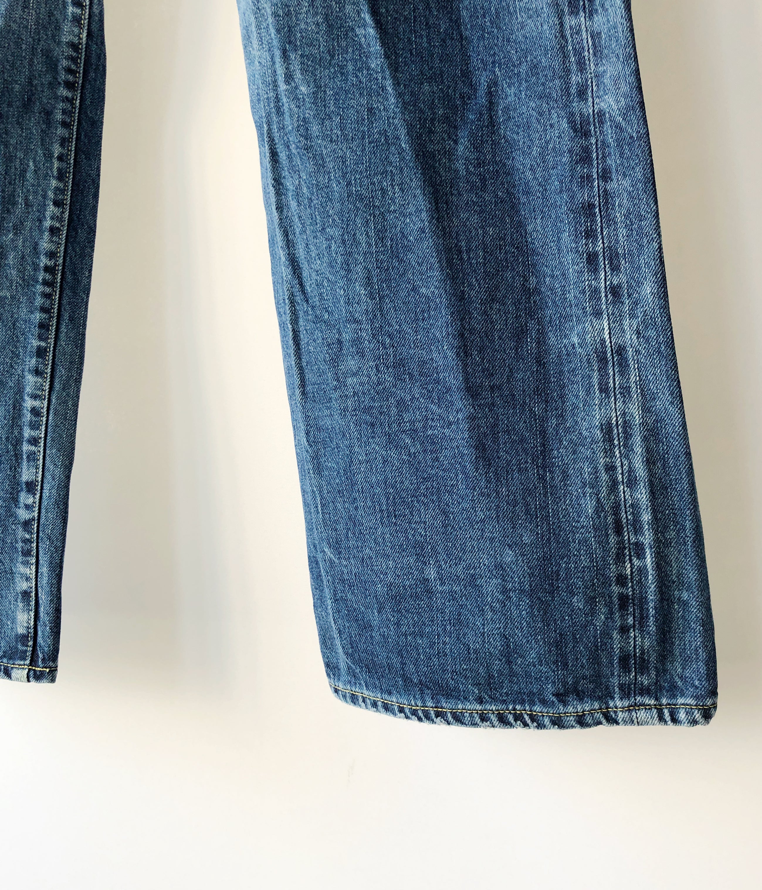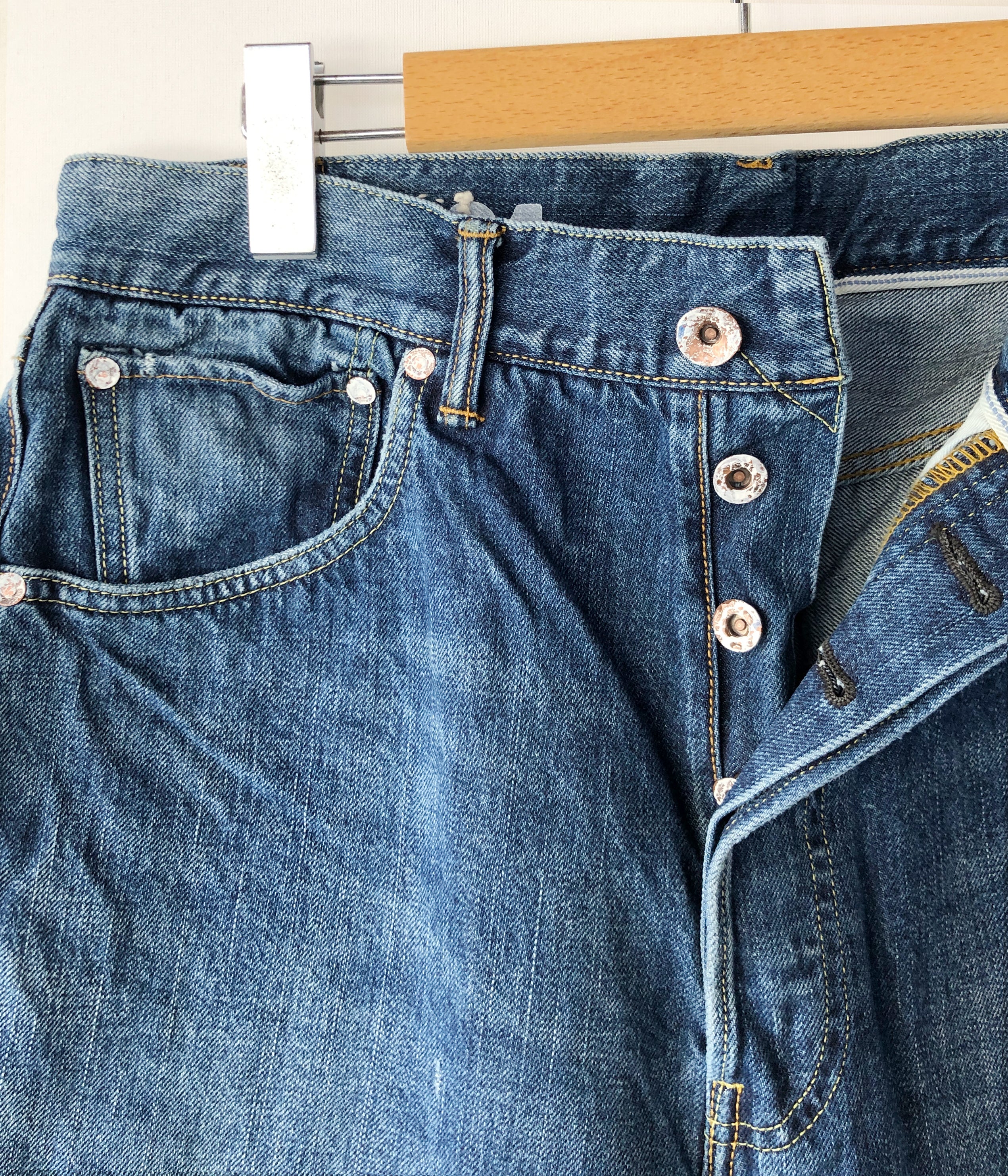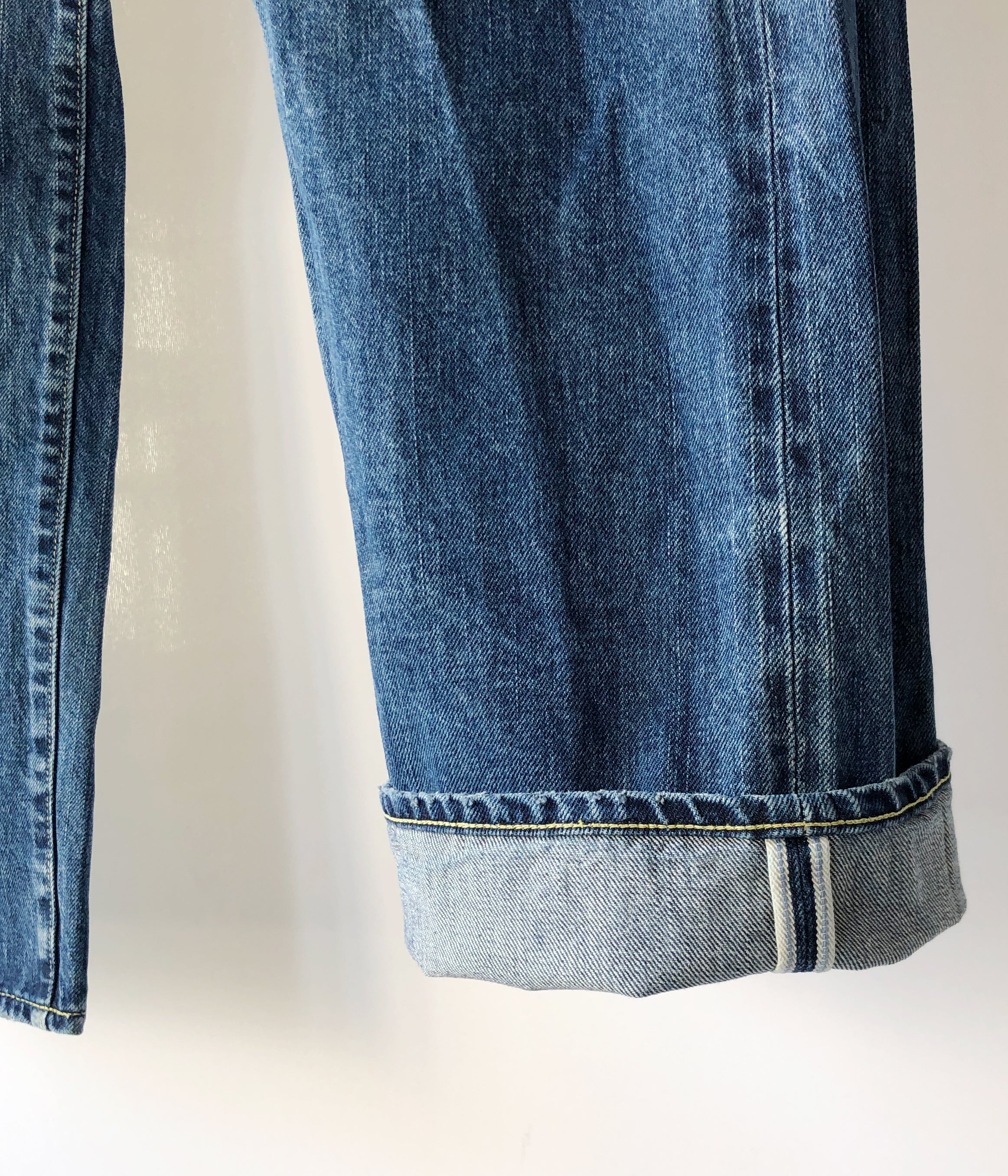 visvimから、SOCIAL SCULPTURE 01 DRY-21が入荷しました。13ozオリジナルDRY DENIMを使用。股上が深く、ストレートシルエット。ボタンフライ、ブルーセルビッジ、オリジナルハンドメイド銅製ドーナツ釦、ハンドリベット。刺し子入り天然染色加工を施したディアスキンパッチ付き。ダメージ、ドライ塩縮加工を施しました。