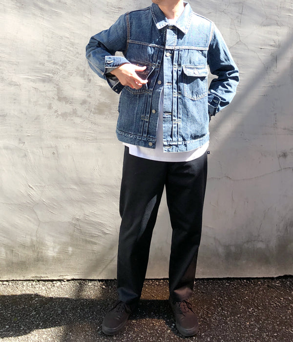 visvimから、SS 101 JKT DMGD-1001が入荷しました。14ozのオリジナルデニムを使用したジャケット。ブルーセルビッジをアウトシームに使用した贅沢な仕立てと、天然染め加工を施したディアスキンによる革パッチをアクセントに。フラップ付きパッチポケットに加え、サイドのシームラインに沿ったファスナー付きポケットを備えた作り。