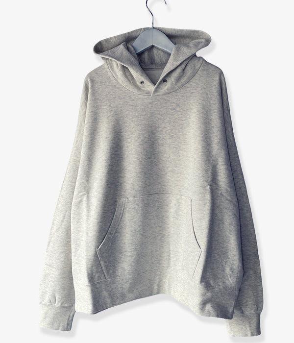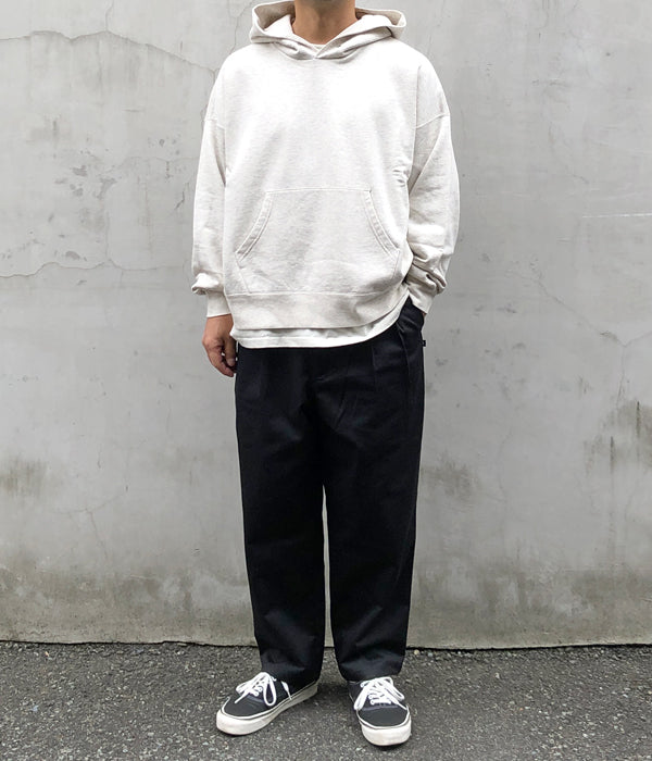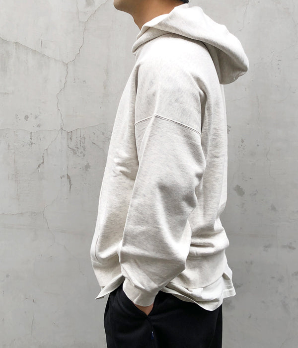 visvimから、ULTIMATE AMPLUS SB HOODIE P.O.が入荷しました。なめらかな肌触りとシルクのような光沢が特徴の海島綿を使用した裏起毛プルオーバーフーディー。ワンウォッシュ仕上げの味わい深い表情に、ドロップショルダーによるゆったりとしたシルエット。
