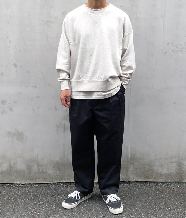 visvimから、ULTIMATE AMPLUS SB SWEAT L/Sが入荷しました。なめらかな肌触りとシルクのような光沢が特徴の海島綿を使用した裏起毛CNスウェット。ワンウォッシュ仕上げの味わい深い表情に、ドロップショルダーによるゆったりとしたシルエット。