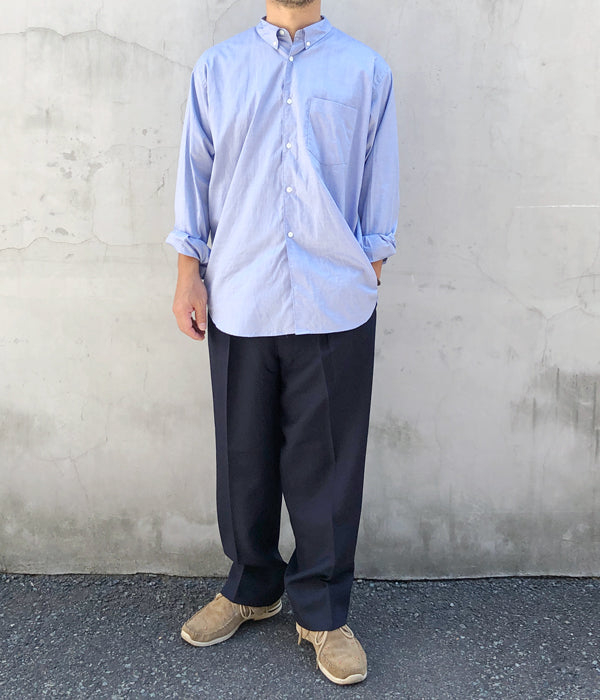 WELCOME-RAINから、STRAIGHT TROUSERが入荷しました。ウール素材を使用した2タック仕様のパンツ。ゆったりとしたもも周りから緩やかなテーパードのきいたシルエット。センタープレスを施し、フロントの持ち出しと、バックストラップがクラシカルな印象を与える品の良い1着。