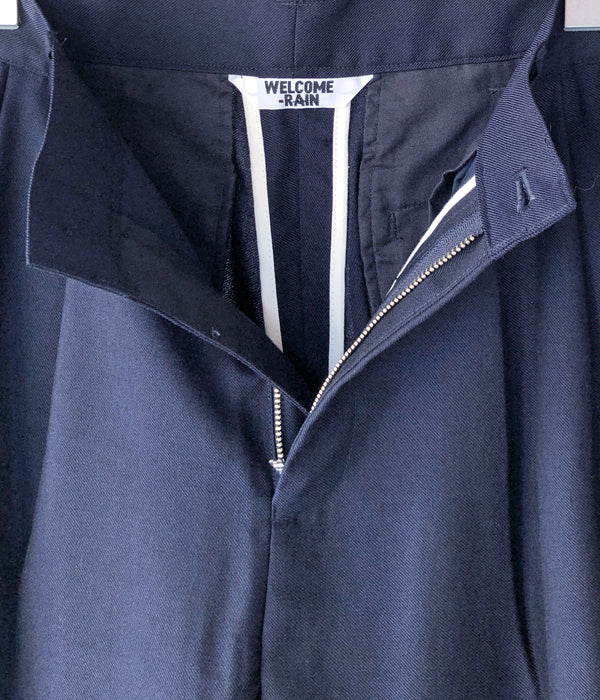 WELCOME-RAIN/TWILL SERGE 2 TUCK TROUSER (NAVY)