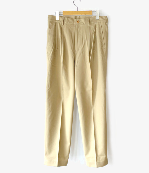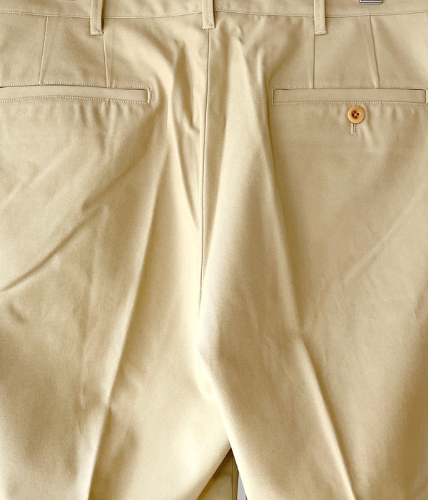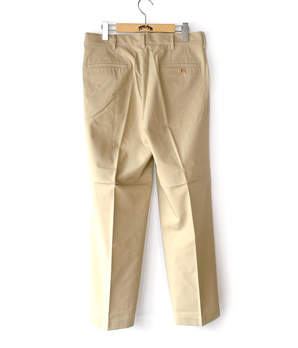 WELCOME-RAINから、VENCHILATION CHINOが入荷しました。コットン製のツータックチノパン、前から見ると普通ですが(とても良い意味でも)、特筆すべきは背面ひざ裏に設けたベンチレーション。風通しが良く快適な着用感を得ることもさることながら、見た目的にも立体的な動きが出るグッドデザイン。適度なゆとりのあるリラックスしたシルエットでついつい毎日着たくなる1着。
