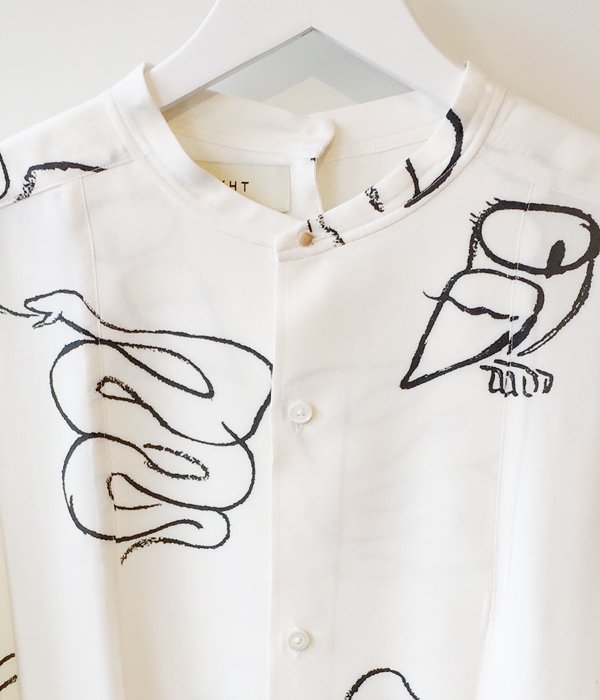 WRYHT/BACK-PLACKET BAND COLLER LONG SHIRTS(WHITE"DRAWING")