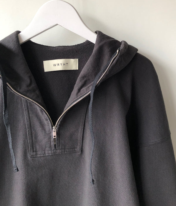WRYHTからFRENCH TERRY ZIP HOODIEが入荷しました。ミッドセンチュリー期のしっかりと度目の詰まったスウェットを彷彿させるフレンチテリー。顎の辺りまでを覆ってくれる特殊なパターンは古い時代のベンチコートのディテールからインスパイアされています。ポケットはシーム上に隠し、ミニマムな印象のフーディー。