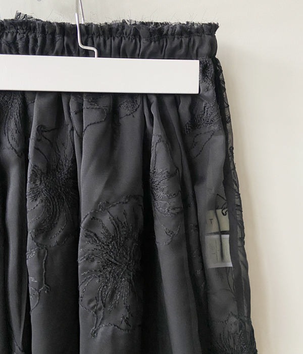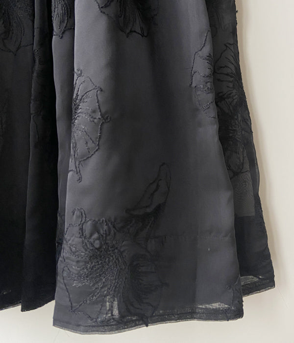 WRYHTからGATHERED FOLK SKIRTが入荷しました。デザイナーが敬愛するアーティストのフラワードローイングを元にデザインしたオリジナルテキスタイルのスカート。パート毎に糸の種類を変え、奥行きを出し刺繍したオーガンジーが特徴です。ヨーロッパの民族衣装をベースにデザインされたギャザースカートはどこかノスタルジーなムードで、雰囲気のあるスタイリングに。