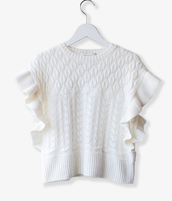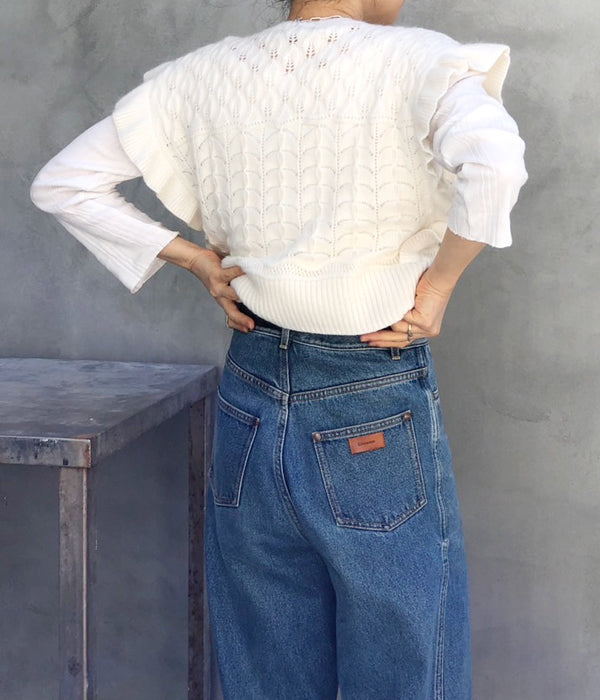 WRYHTからLACE PETTICOAT PATTERN TINY VESTが入荷しました。ビクトリアン時代のペチコートのニットパターンからインスパイアされデザインされた編み柄のニットベスト。袖に付くフリルでガーリーな雰囲気もありつつノスタルジーな雰囲気も併せ持つ、重ね着の楽しめる一着です。