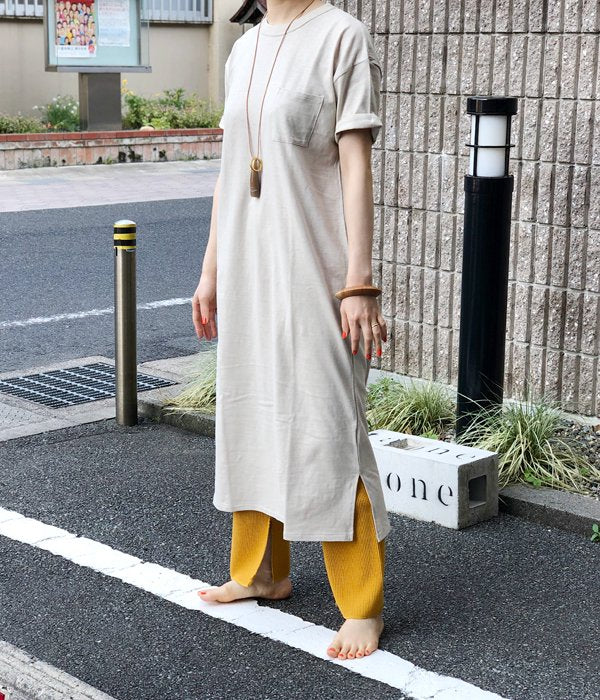 コットン天竺のソフトな肌ざわりのTシャツワンピース。リラックス感がありながら野暮ったく見えない絶妙なシルエットで、暑い日などはこれ一枚でもOK。もちろんパンツやレギンスをレイヤードしても良しの、頼れる一着に仕上がっています。