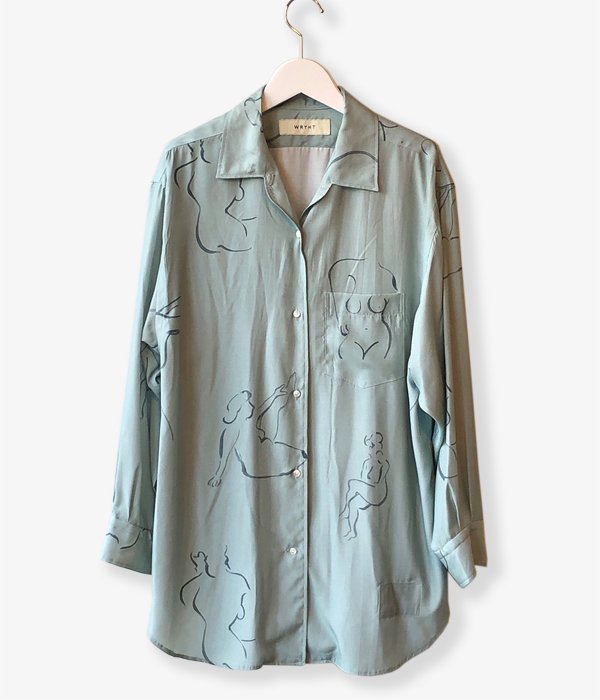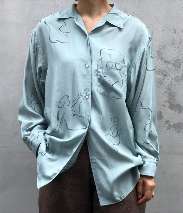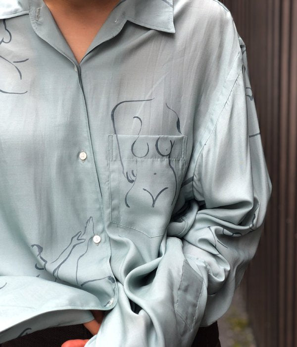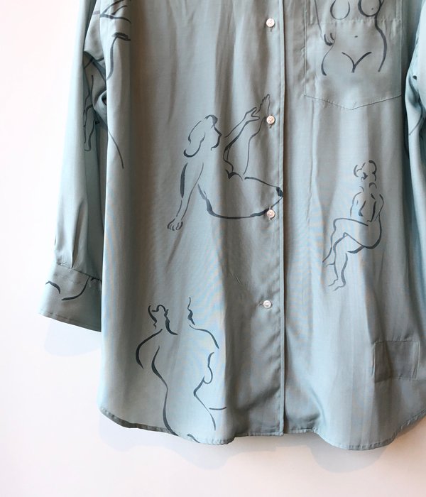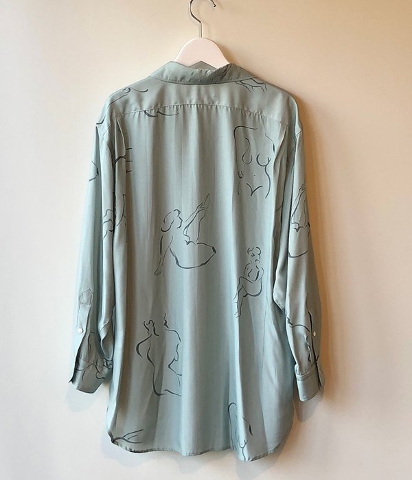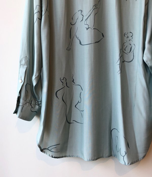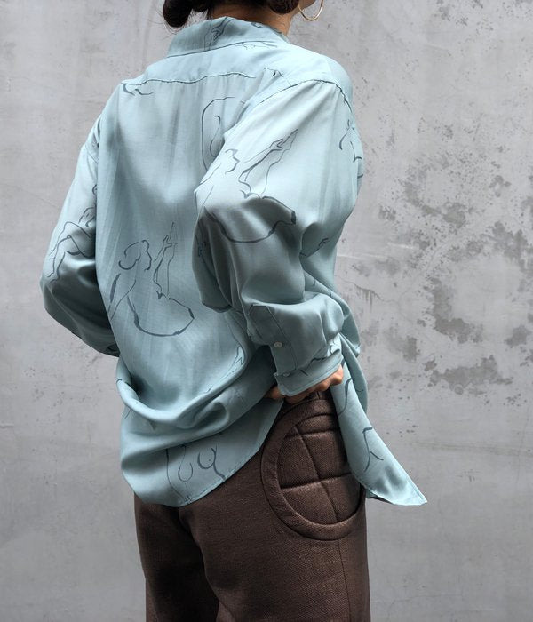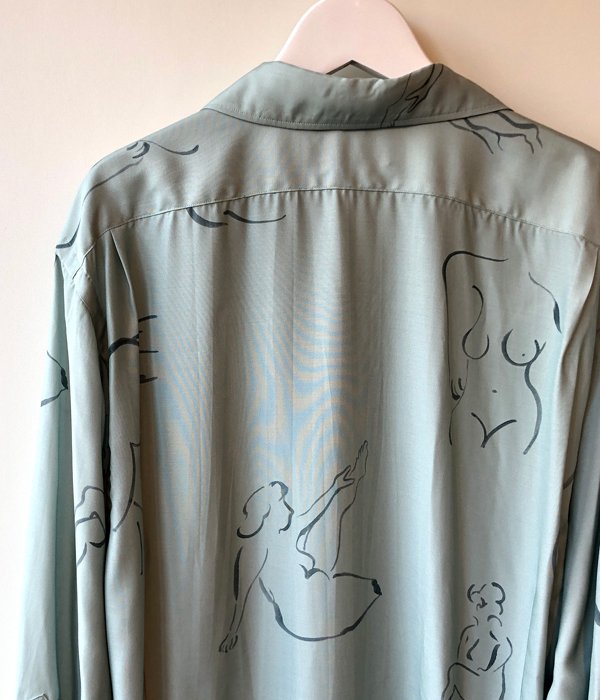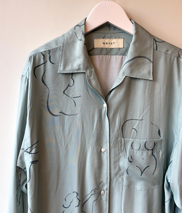 WRYHTからONE-PIECE COLLAR BLOUSEが入荷しました。ワンピースのパターンからデザインされたオープンカラーのシャツ。どこか懐かしさの漂う雰囲気とドローイング柄が見事にマッチ。ゆったりしたシルエットながら光沢感のある生地とカラーリングでカジュアル過ぎずクリーンなイメージで着用できる一枚です。