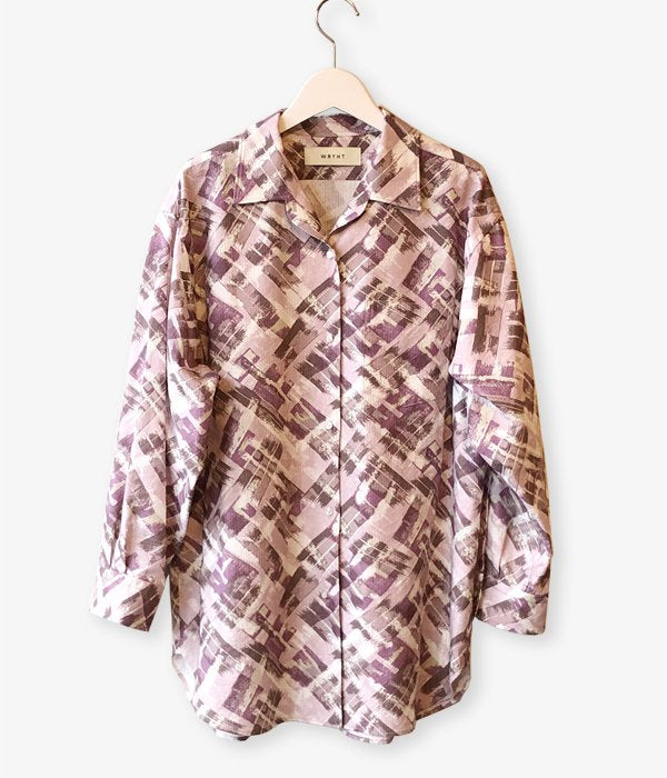 WRYHTからONE-PIECE COLLAR BLOUSE(ROSE)が入荷しました。ワンピースのパターンから製作されたオープンカラーのシャツ。ミッドセンチュリー期のデザインからインスピレーションのオリジナル生地を使用しています。ゆったりしたシルエットながらカジュアル過ぎずクリーンな印象で着用いただけます。