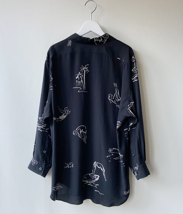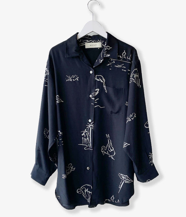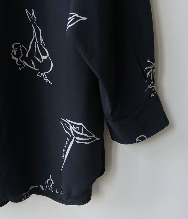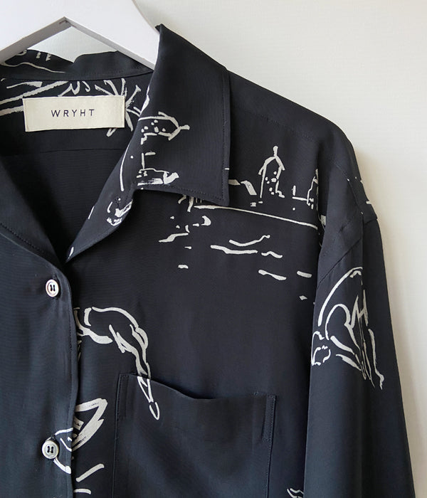 WRYHTからONE-PIECE COLLAR BLOUSE/SWIMが入荷しました。シグネチャーピースでもある台襟のない一枚つづきの襟が特徴的なシンプルなブラウス。今期のドローイングパターンは1920~30年代のスイムウェアを着て飛び込みを楽しむ柄。古き良き避暑地での賑わいを感じる一枚です。