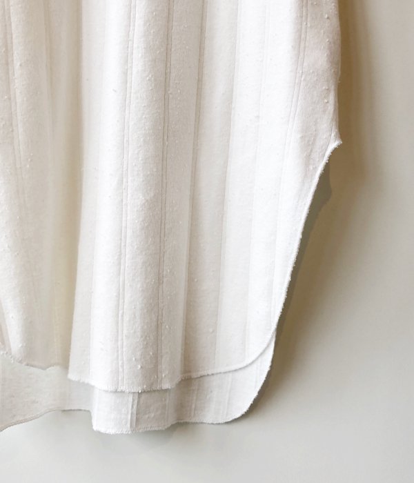 WRYHTからROUND-NECK RIBBED TANK(BONE)が入荷しました。ピリングした風合いの針抜きフライスがどこか懐かしく、製品染めされた雰囲気のあるカラーリングが特徴的なタンクトップ。着古した感がありながらも古着とは違う、とてもユニークな一枚です。