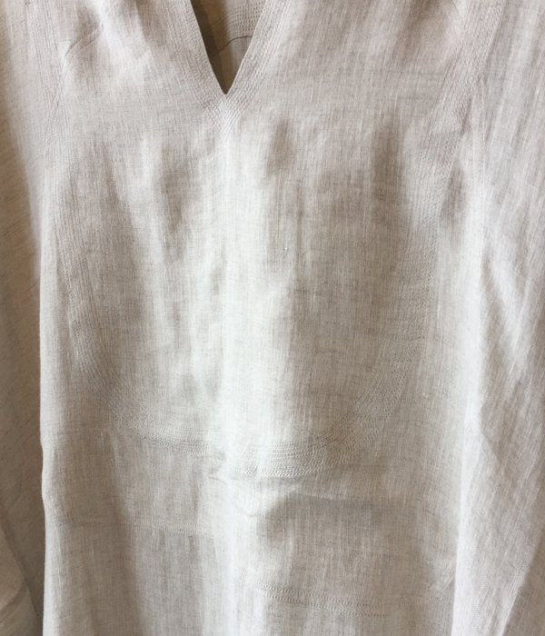昼夜の厳しい温度差の砂漠で生きる民が纏っている衣装からインスピレーションのサハラドレス。特徴的なたっぷり身幅のビッグシルエットで暑い日も快適に着用いただけます。同カラー展開ののTATAMI TROUSERとのセットアップでムード溢れる着こなしもおすすめです。