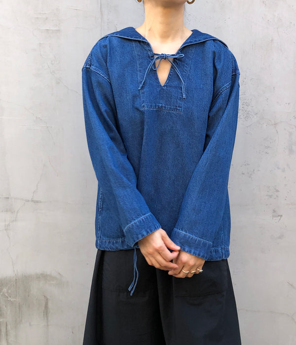 WRYHT/SAILOR COLLAR SMOCK TOP(INDIGO)