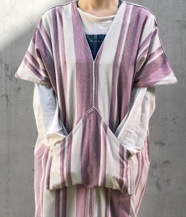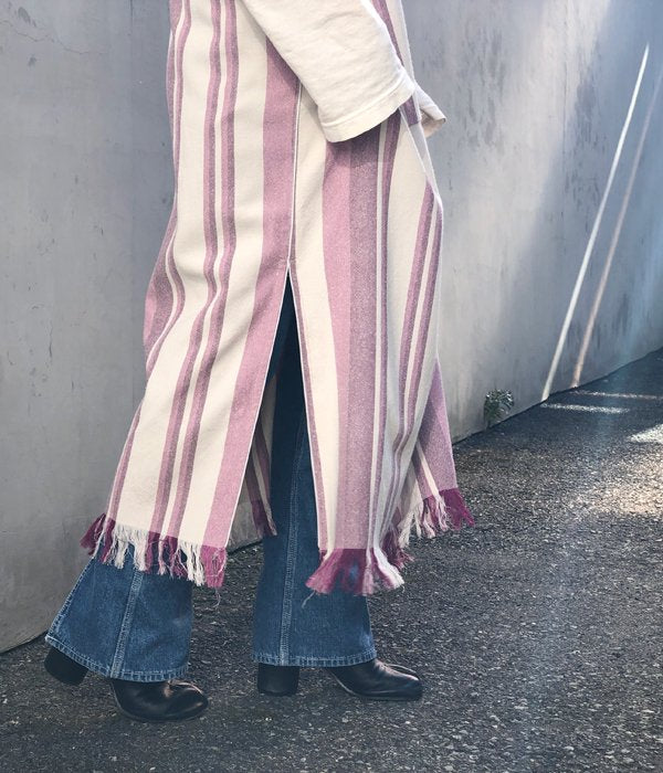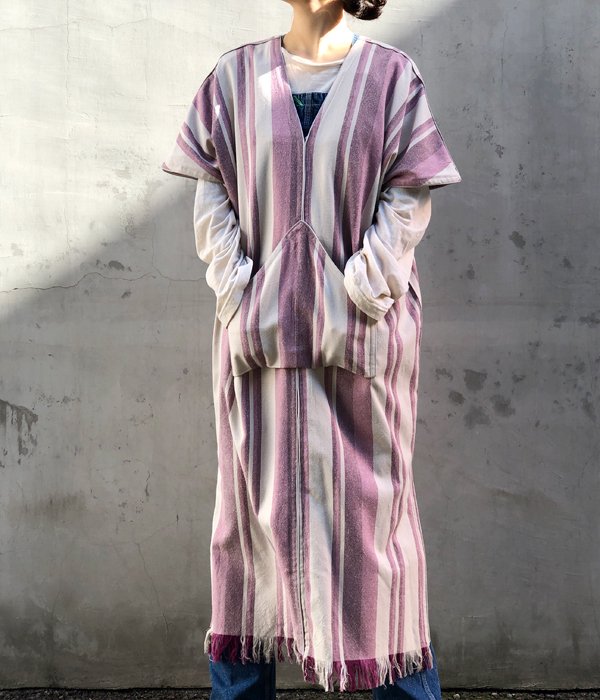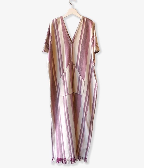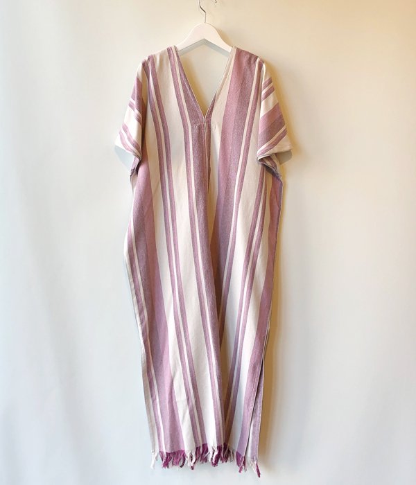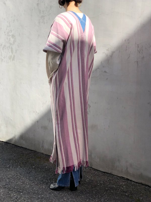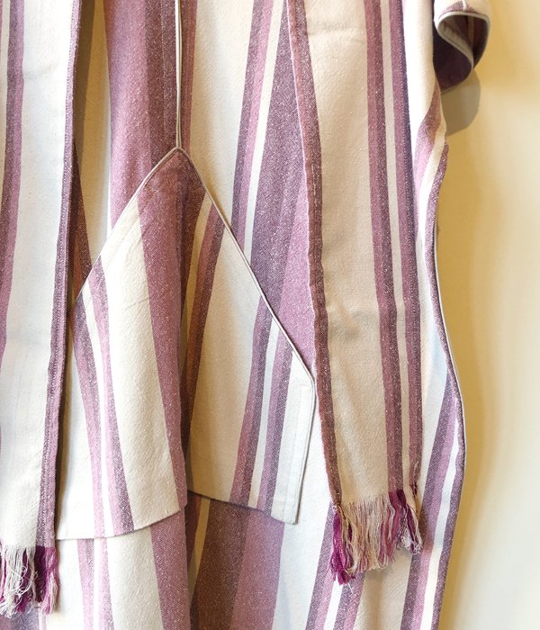 WRYHTからSLIT NECK MAXI TUNIC(ROSE STRIPE)が入荷しました。鮮やかなオリジナルストライプ生地はアフリカンテキスタイル、デザインはイスラム圏の民族衣装からインスピレーション。使い込んだような風合いやスリットネック、大きく取られたポケット、裾に施されたフリンジなど特徴的なディテールが見事に融合した雰囲気抜群のチュニックです。
