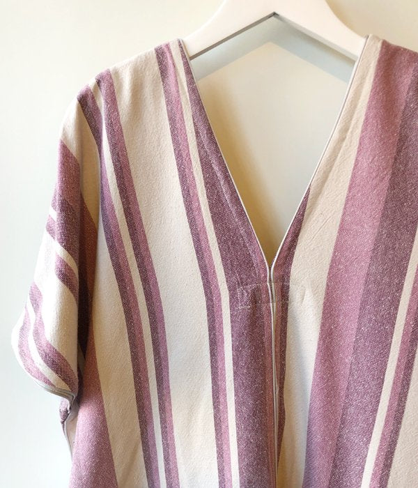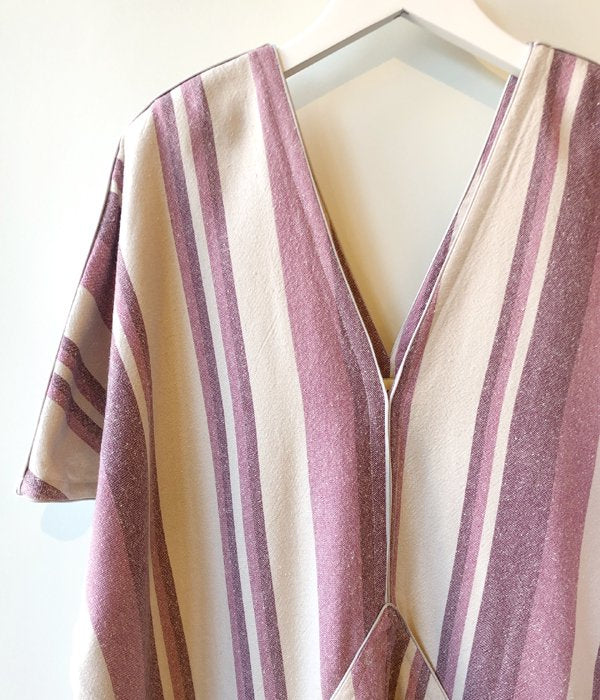 WRYHT/SLIT NECK MAXI TUNIC(ROSE STRIPE)