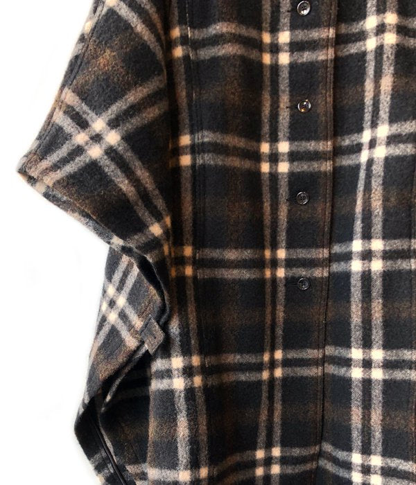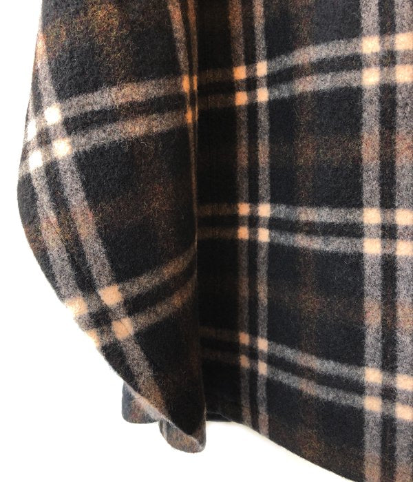 WRYHT/STAND COLLAR MANTLE(BLACK PLAID)